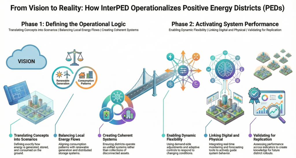 Positive Energy Districts (PEDs) are often described in terms of their potential to transform urban energy systems. However, moving from concept to implementation requires more than strategic vision. It requires concrete operational scenarios that define how technologies, infrastructures, and stakeholders interact in real environments.