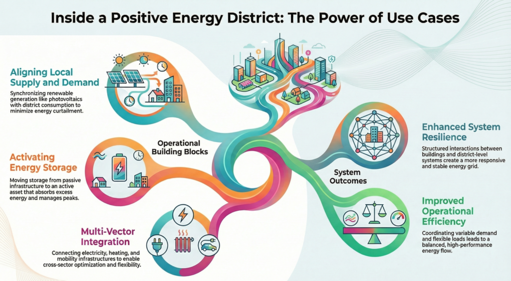 Positive Energy Districts are often discussed in terms of their outcomes—energy surplus, emissions reduction, and system efficiency. Yet these outcomes are the result of coordinated processes taking place within the district.